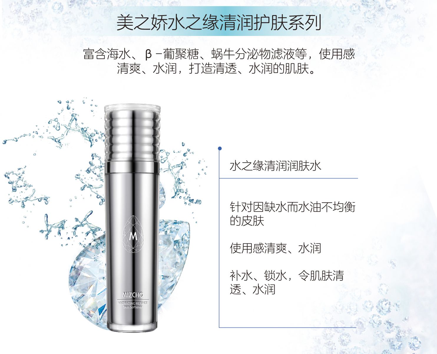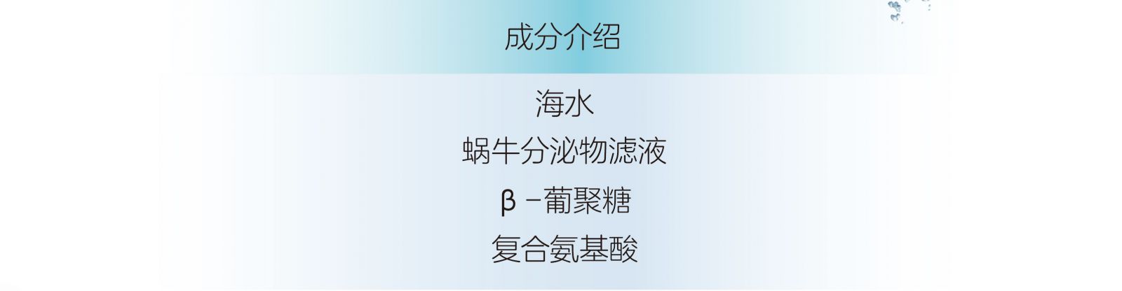 富含海水、β-葡聚糖、蝸牛分泌物濾液等,使用感清爽、水潤,打造清透、水潤的肌膚。