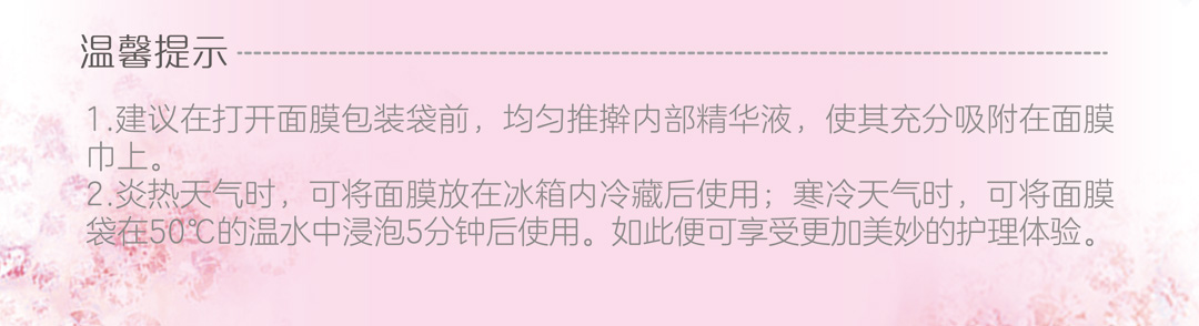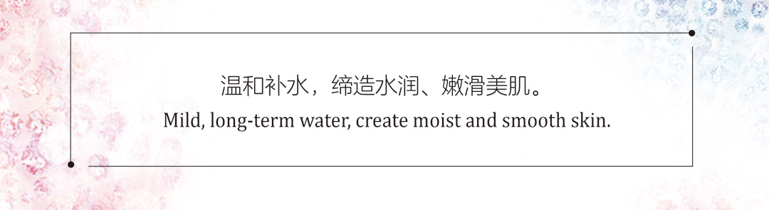 為肌膚提供充足的水分及營(yíng)養(yǎng),即時(shí)改善皮膚的缺水狀態(tài),持久補(bǔ)水保濕,令肌膚水潤(rùn)光澤、柔滑通透。
