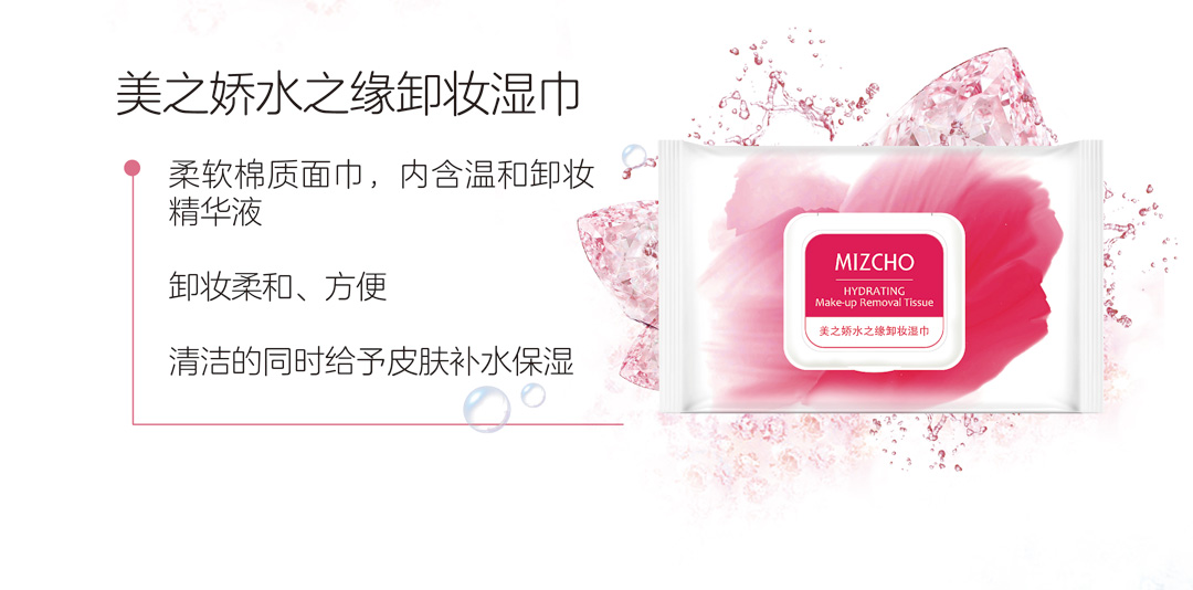 柔軟棉質面巾,內含溫和卸妝精華液,溫柔、快速、方便的卸除面部彩妝及污垢,清潔的同時給予皮膚補水保濕。