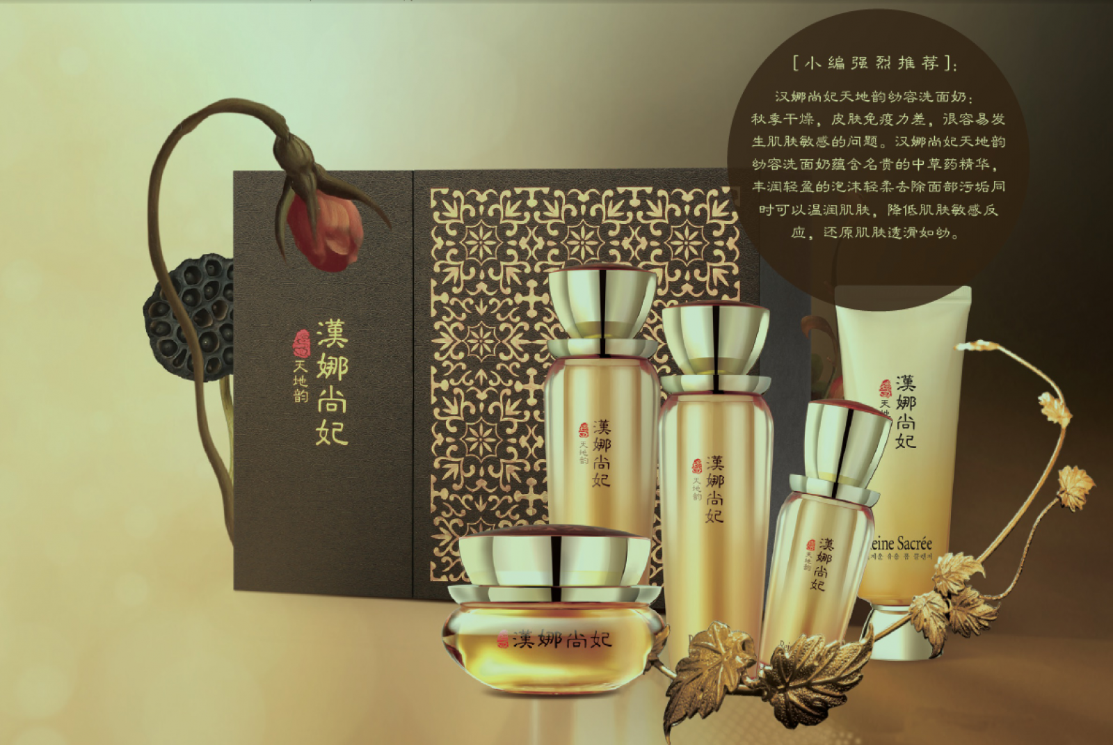 締造陰陽平衡的醇真幼容?。?/span> 漢娜尚妃天地韻幼容護(hù)膚系列采用32味珍貴的中草藥匯集成養(yǎng)顏古方天地丹,可令肌膚深層陰陽平衡、氣血津液調(diào)和,深入調(diào)理并改善肌膚多重問題,同步解決抗衰、緊致、亮膚、保濕、鎮(zhèn)靜五大肌膚問題。 |