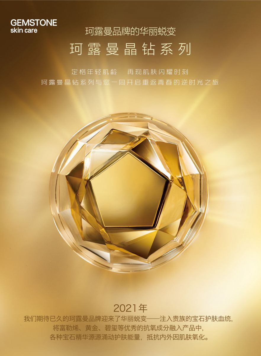 2021年 我們期待已久的珂露曼品牌迎來了華麗蛻變——注入貴族的寶石護膚血統(tǒng),將富勒烯、黃金、碧璽等優(yōu)秀的抗氧成分融入產品中, 各種寶石精華源源涌動護膚能量,抵抗內外因肌膚氧化。