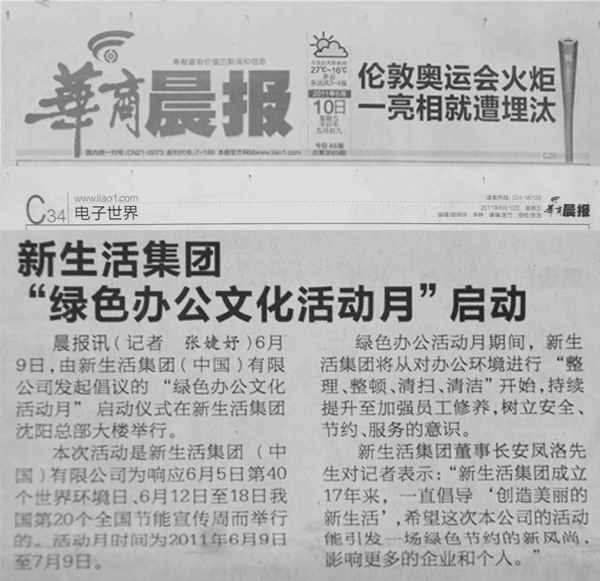 新生活集團董事長安鳳洛先生對記者表示:“新生活集團成立17年來,一直倡導(dǎo)‘創(chuàng)造美麗的新生活’,希望這次本公司的活動能引發(fā)一場綠色節(jié)約的新風(fēng)尚,影響更多的企業(yè)和個人。”