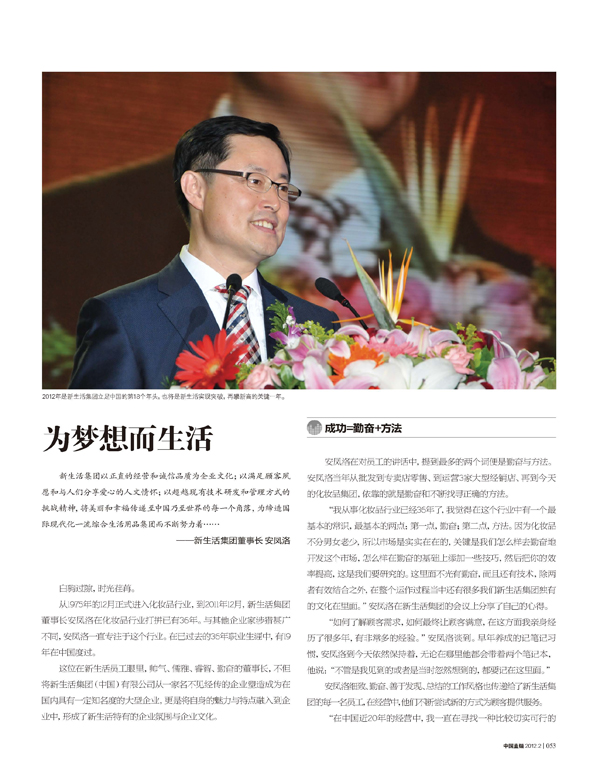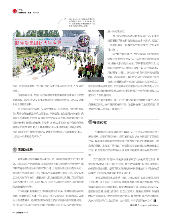 新生活集團(中國)有限公司 董事長:安鳳洛