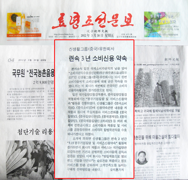 [遼寧朝鮮文報]新生活集團連續(xù)3年被評為維護消費者誠信單位
