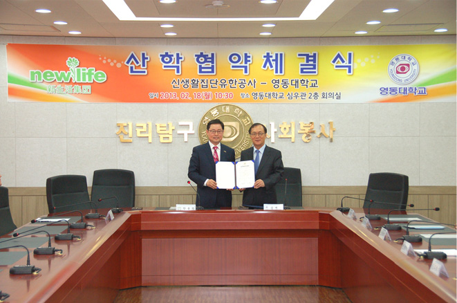 2013年2月18日,新生活集團(中國)有限公司董事長安鳳洛先生與韓國永同大學院長宋在成在韓國永同大學簽訂了產學合作協議。