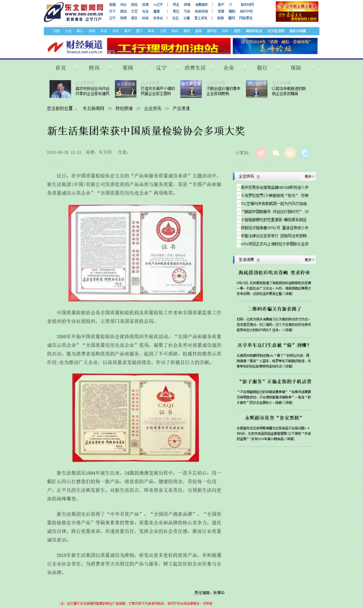 (網(wǎng)絡(luò)媒體)新生活集團(tuán)榮獲中國質(zhì)量檢驗(yàn)協(xié)會(huì)多項(xiàng)大獎(jiǎng)
