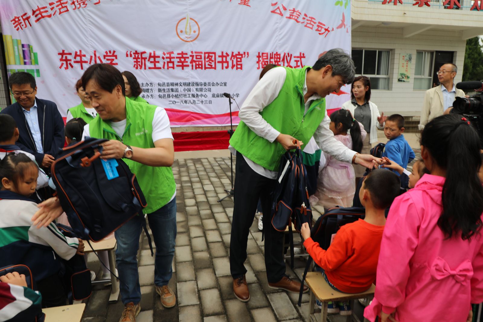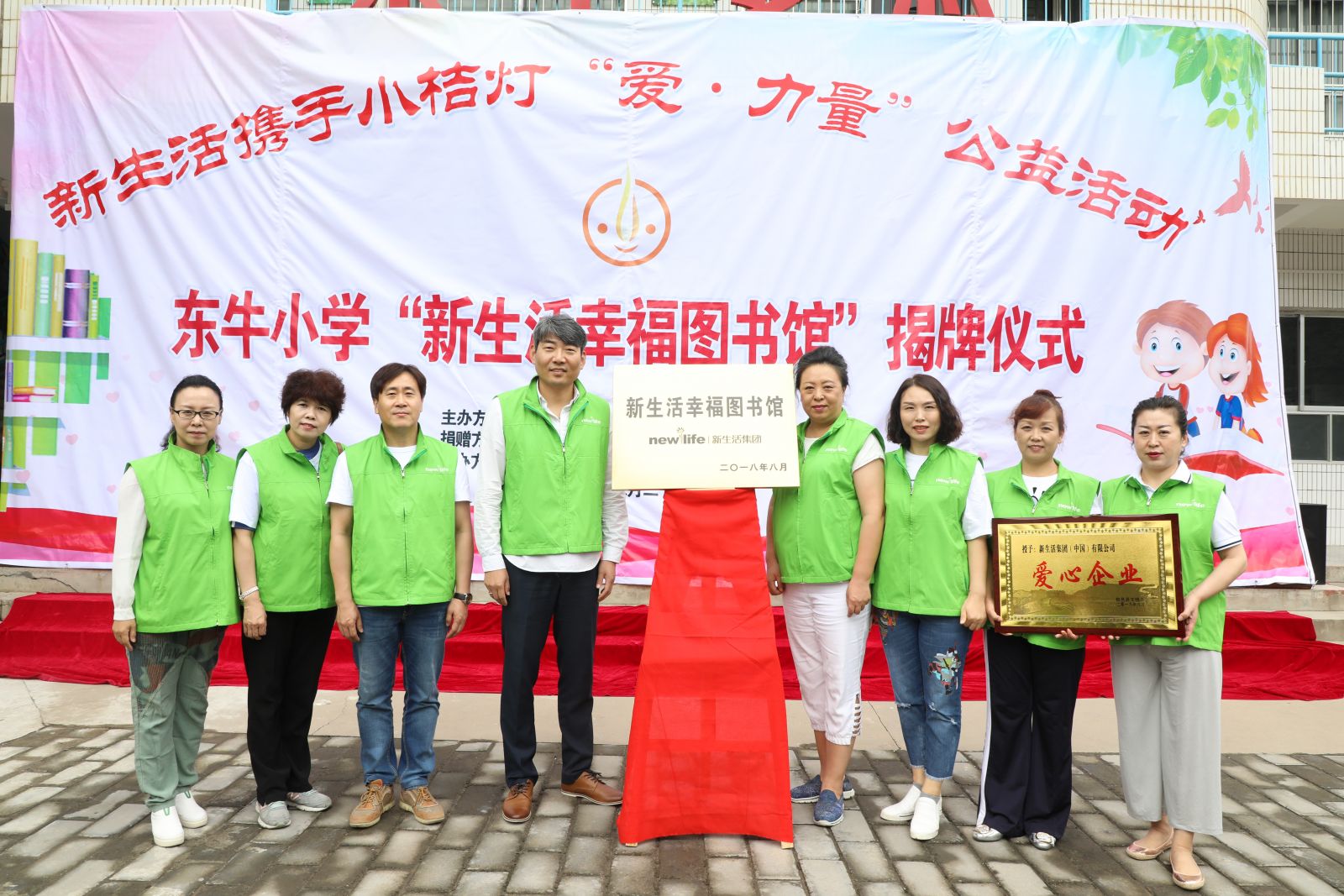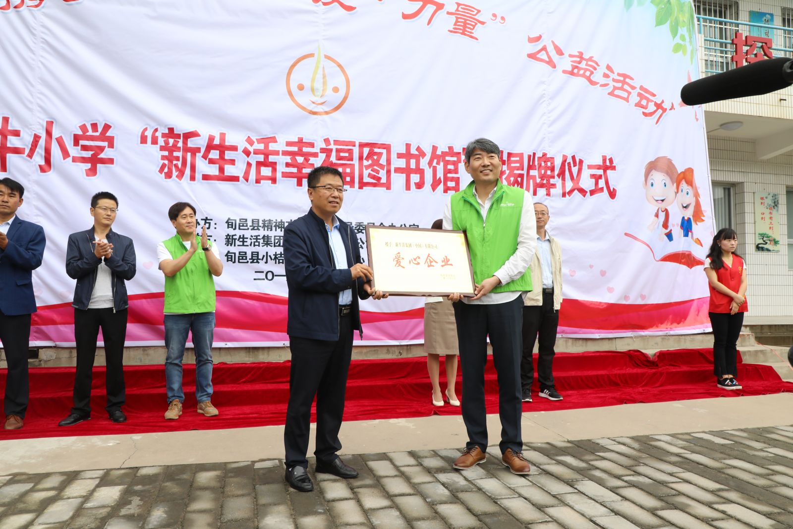 今年7月,新生活集團(tuán)副董事長安奎丕跟隨本企業(yè)公益團(tuán)隊為東牛小學(xué)的孩子們送去愛心物資,在那次與本校校長的交談中了解到該校的孩子們除了教科書外,難以獲得充足的課外閱讀書籍,這已成為他們開闊眼界,找尋夢想的一大阻礙。因此安奎丕副董事長決定與旬邑縣底廟鎮(zhèn)東牛小學(xué)達(dá)成10萬元的圖書捐贈協(xié)議,將建立第一家“新生活幸福圖書館”。在協(xié)議簽訂后,新生活集團(tuán)公益團(tuán)隊立刻開展圖書館的落實工作,于8月23日成功完成了“新生活幸福圖書館”的建立并舉辦了“新生活幸福圖書館”的揭牌儀式。新生活集團(tuán)洪晙榮社長、林鳯俊專務(wù)、旬邑縣的相關(guān)領(lǐng)導(dǎo)、“小桔燈”社工服務(wù)中心人員以及底廟鎮(zhèn)東牛小學(xué)全體師生和新生活集團(tuán)的愛心志愿者們參加了本次儀式。