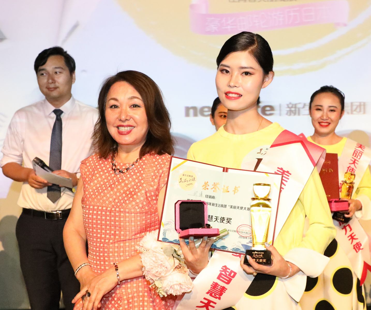 經(jīng)過所有精彩環(huán)節(jié)的一一展示,在新生活集團(tuán)評(píng)委團(tuán)的仔細(xì)、認(rèn)真的評(píng)選下,最終四個(gè)單項(xiàng)獎(jiǎng)的獲得者榮耀勝出。智慧天使獎(jiǎng)項(xiàng)由15號(hào)選手——劉倩獲得、精致天使獎(jiǎng)項(xiàng)由4號(hào)選手——陳臘梅獲得、婀娜天使&活力天使獎(jiǎng)項(xiàng)均由7號(hào)選手——曹陽一人獲得??吹剿齻円驂?mèng)想而成為了新生活的一名經(jīng)銷商,又因?yàn)樽孕藕陀職舛驹诹诉@個(gè)自我展示的魅力舞臺(tái),向眾人展示自己的顏值力、專業(yè)力、自信力,相信這就是加入新生活的魅力所在。