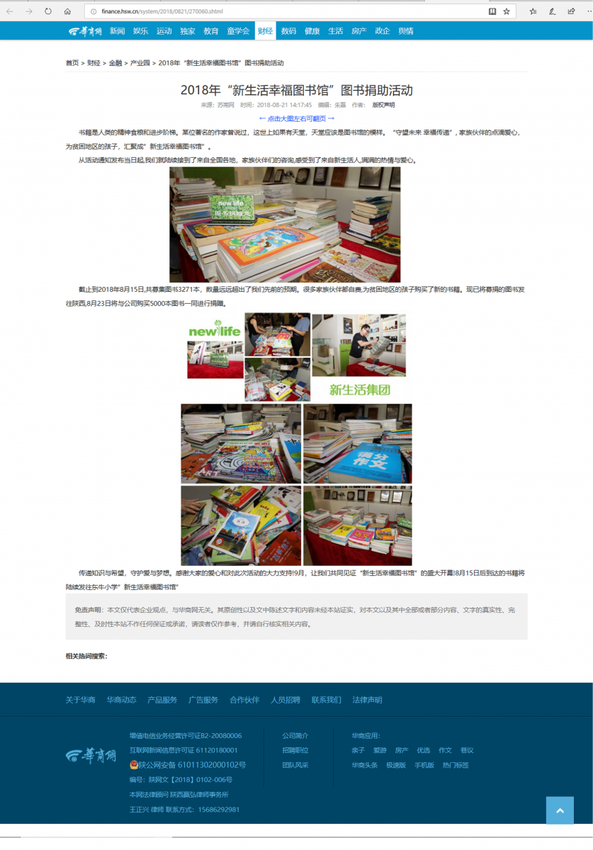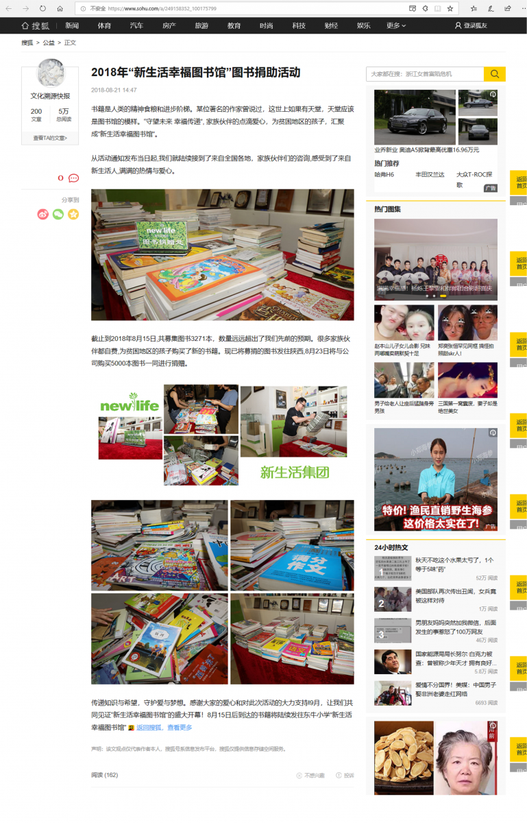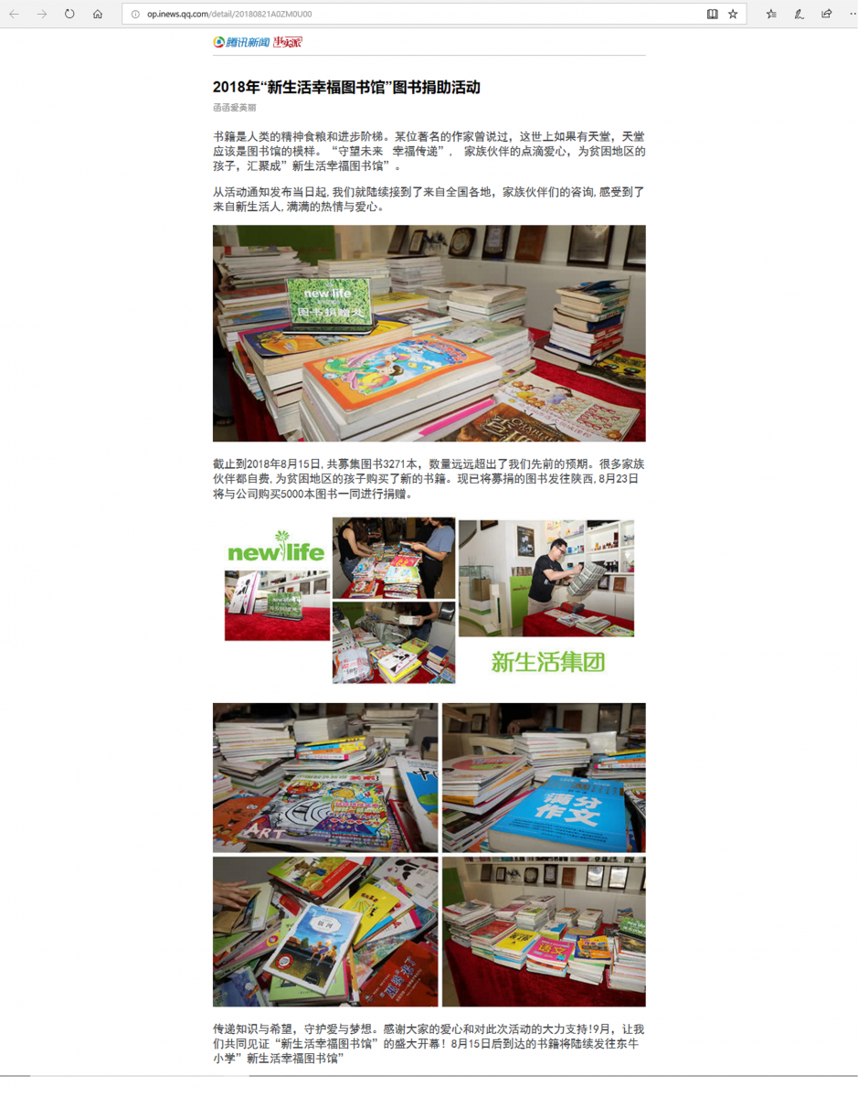 (網(wǎng)絡(luò)媒體)2018年“新生活幸福圖書館”圖書捐助活動
