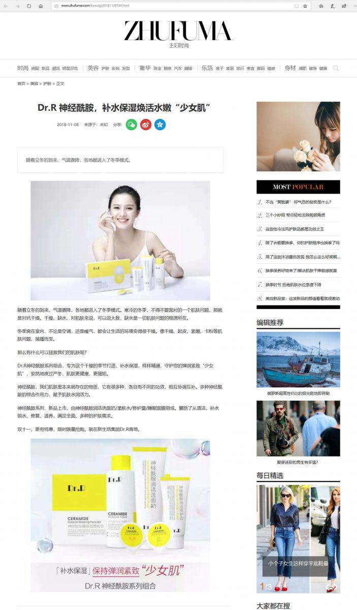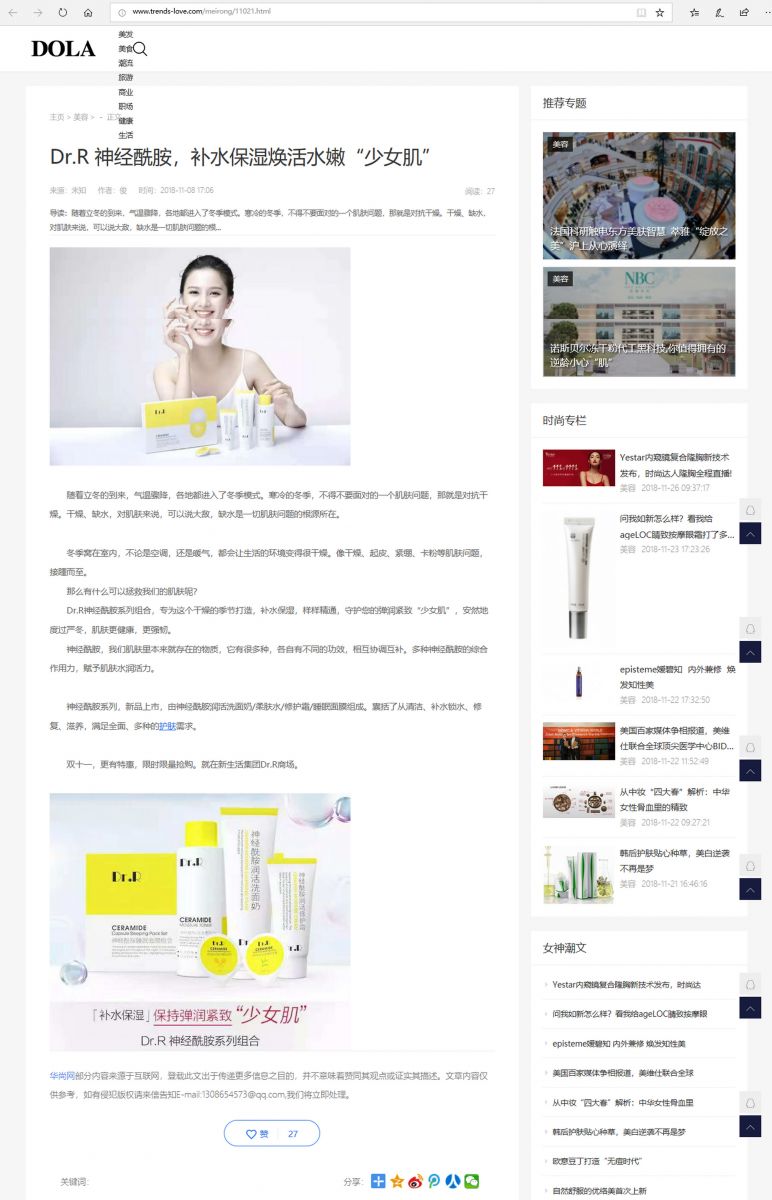 (網(wǎng)絡(luò)媒體)Dr.R 神經(jīng)酰胺,補水保濕煥活水嫩“少女肌”