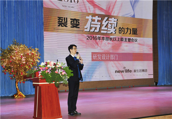 2016年,新生活集團成立22年,作為開年的首個大型會議,新生活集團安鳳洛董事長、安青洛副董事長攜集團各部門高管專程前往出席,并分別就新生活文化及品格、新生活中國業(yè)務(wù)的發(fā)展與策略、銷售隊伍的建立、發(fā)展及行動計劃、品牌樹立及研發(fā)等方面,為精英們指明方向,堅定信念,激發(fā)動力。