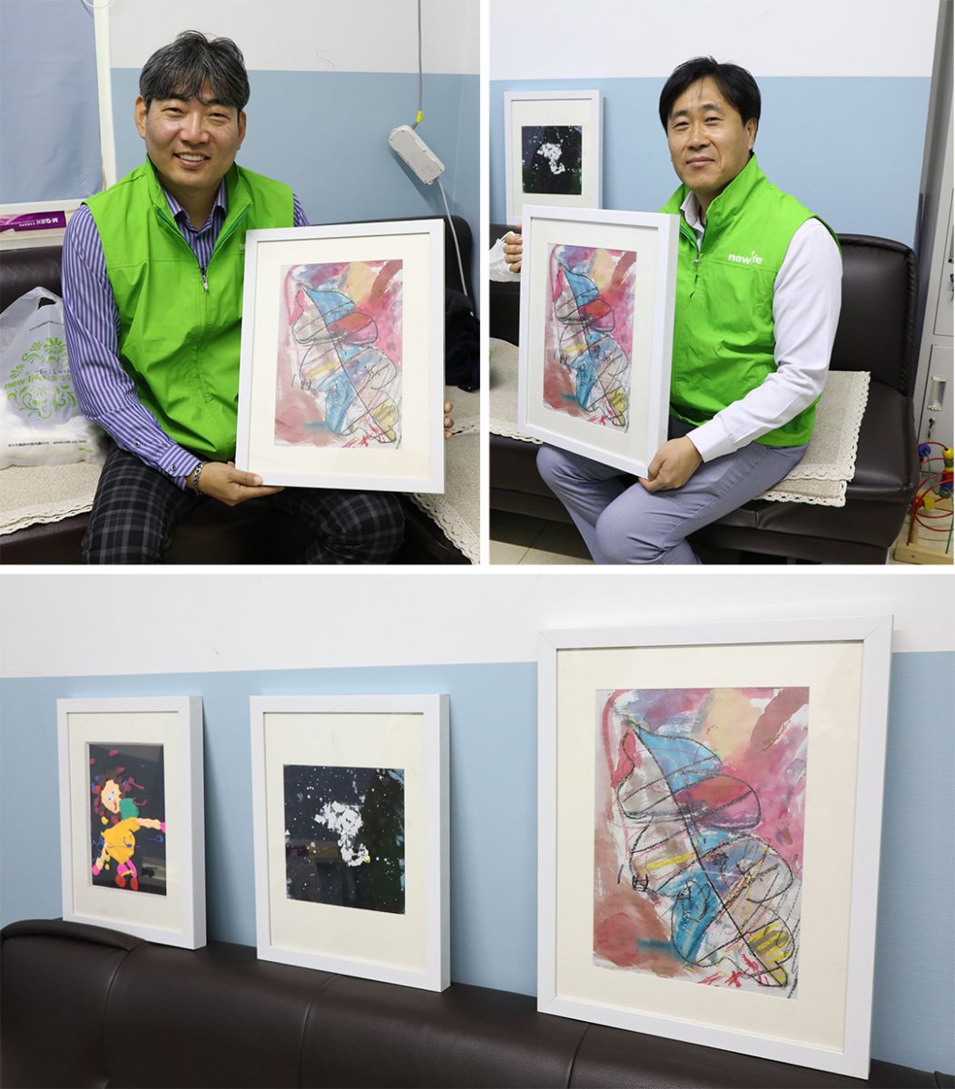 來到兒童服務(wù)中心,胡校長首先向洪晙榮社長和林鳯俊專務(wù)介紹了一些自閉癥兒童患者的情況,校長室內(nèi)幾幅小朋友創(chuàng)作的水彩畫引起了領(lǐng)導(dǎo)們的注意,雖然孩子們封閉在自己的小世界里,但繪畫為他們打開了一扇窗,讓他們有機(jī)會(huì)表達(dá)出內(nèi)心不一樣的風(fēng)景。