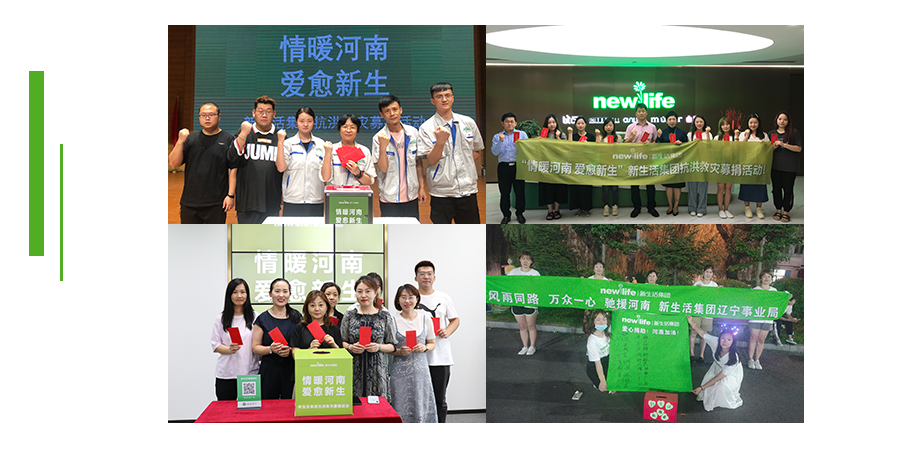面對突如其來的的災(zāi)情,自7月20日起,新生活集團(tuán)公益BU第一時(shí)間向集團(tuán)全體員工及事業(yè)局家族伙伴們發(fā)出了《河南賑災(zāi)公益行》的捐款倡議,集團(tuán)上下各部門積極響應(yīng)、爭相捐款,截止2021年8月6日捐款活動(dòng)圓滿結(jié)束,共募集善款567,296.07元(受災(zāi)較重店鋪獲贈(zèng)2000元,受災(zāi)較輕店鋪獲贈(zèng)1000元)。此次募捐所得善款將按照受災(zāi)程度逐一分配給新生活河南受災(zāi)店鋪。