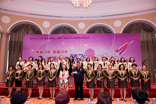 隨后,營銷戰(zhàn)略部門為大家?guī)砹似诖丫玫?014年下半年新品發(fā)布消息,同時也為大家?guī)砹诵碌哪繕撕拖M?。前不久,新生活集團贊助的韓國SBS電視臺水木劇《你們被包圍了》落下了帷幕,節(jié)目中多次出現(xiàn)了公司的產品,在這一期間其銷售量均有了明顯的提高。優(yōu)秀的業(yè)績已經定格在了上半年。為了完成2014年年終的目標,唯有將努力付諸于下半年。各個事業(yè)局也紛紛采取歌舞、詩朗誦等別具一格的方式喊出了2014年下半年的工作決心。
