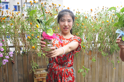 這一刻,時間定格。親手制作的盆栽見證了我們的友情。
