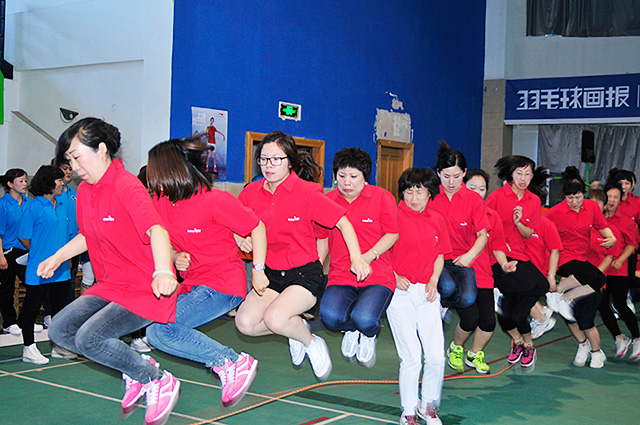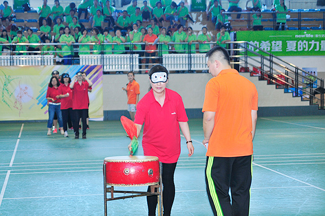 多人跳大繩比賽不僅需要一起跳繩的人保持統(tǒng)一的節(jié)奏更是對(duì)搖繩人體力的考驗(yàn)。由最初練習(xí)時(shí)每個(gè)隊(duì)伍最多只能跳幾個(gè)到最后跳十幾個(gè),在這個(gè)過(guò)程中也是大家將心彼此靠攏的過(guò)程。最終霹靂隊(duì)和冠軍隊(duì)僅以一跳只差,分獲一二名。在蒙眼接力中,被蒙眼睛的隊(duì)員們小心翼翼的走到鼓前擊鼓,更有隊(duì)員走偏場(chǎng)地,讓場(chǎng)外觀眾笑聲不斷。“心有靈犀一點(diǎn)通”讓人們不禁佩服比賽人之間的默契和睿智。隊(duì)員們團(tuán)結(jié)一致、默契配合的精神也是新生活集團(tuán)壯大發(fā)展的保障之一。如果說(shuō)在運(yùn)動(dòng)場(chǎng)上拼搏的運(yùn)動(dòng)員是閃亮明星,擁有著耀眼的光芒,那么在臺(tái)下辛勤付出的志愿者、裁判和攝影師們就是遼闊的天空,讓這一切光芒擁有綻放的地方。
