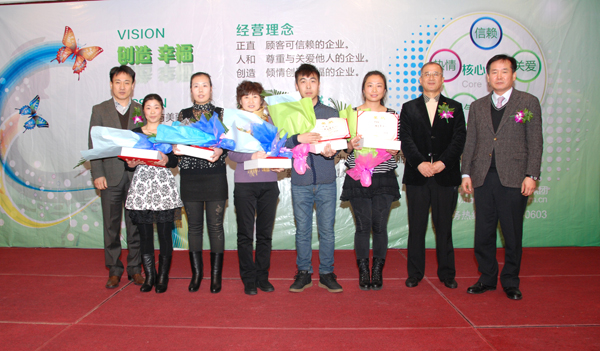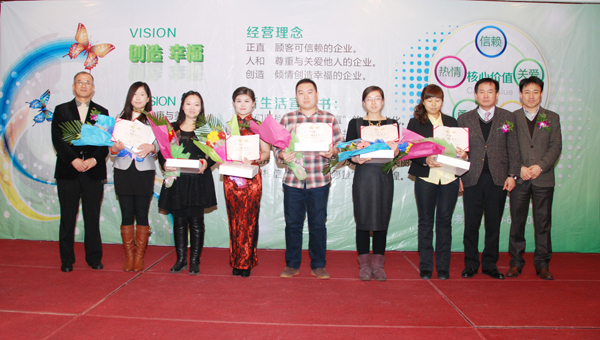 在過去一年里,公司的業(yè)績突飛猛進(jìn),取得了飛速的發(fā)展這些都離不開公司全體成員的耕耘和付出。公司領(lǐng)導(dǎo)為優(yōu)秀員工頒發(fā)了“模范員工獎”和“特殊貢獻(xiàn)獎”。其中安鳳洛董事長為營銷戰(zhàn)略部李京奎理事頒發(fā)了“年度最大成就獎”,公司全體員工也為獲獎的優(yōu)秀員工獻(xiàn)上了最真誠的祝賀和最熱烈的掌聲。