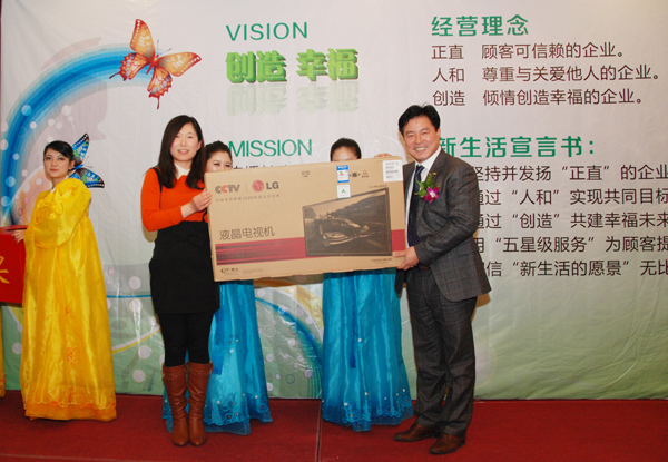 年會伊始安鳳洛董事長發(fā)表致辭并表示,2013年絕非是平常的一年,在大家一年的努力中超額完成任務(wù),圓滿的達(dá)成了年初定下的目標(biāo)這和大家的努力密不可分并為大家感到自豪。在這一年同樣令人興奮的是傾注了董事長全部心血建造并被專家評為亞洲一流工廠的上海工廠的建立。在年會上安鳳洛董事長發(fā)布了新生活集團(tuán)2014年集團(tuán)VISION ,這是新生活集團(tuán)的新篇章,希望大家在未來的工作中也有所創(chuàng)新和突破。在二十年前,安鳳洛董事長懷揣著一個夢想打造了新生活集團(tuán),二十年后夢想不斷實現(xiàn)并壯大著?;仡櫺律罴瘓F(tuán)二十年的發(fā)展,每一年都有不同的經(jīng)歷和考驗,安鳳洛董事長強(qiáng)調(diào)2014年同樣需要大家更多的努力同時更需要大家自我的改變,在工作中尋求創(chuàng)新,在創(chuàng)新中實現(xiàn)發(fā)展和突破。