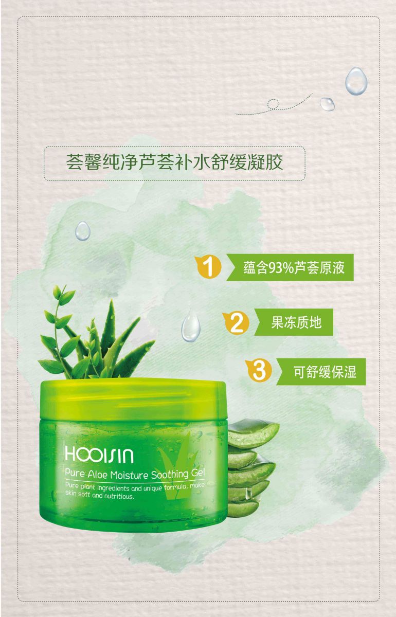 蘊含93%蘆薈原液,果凍質(zhì)地,可保濕并舒緩肌膚。